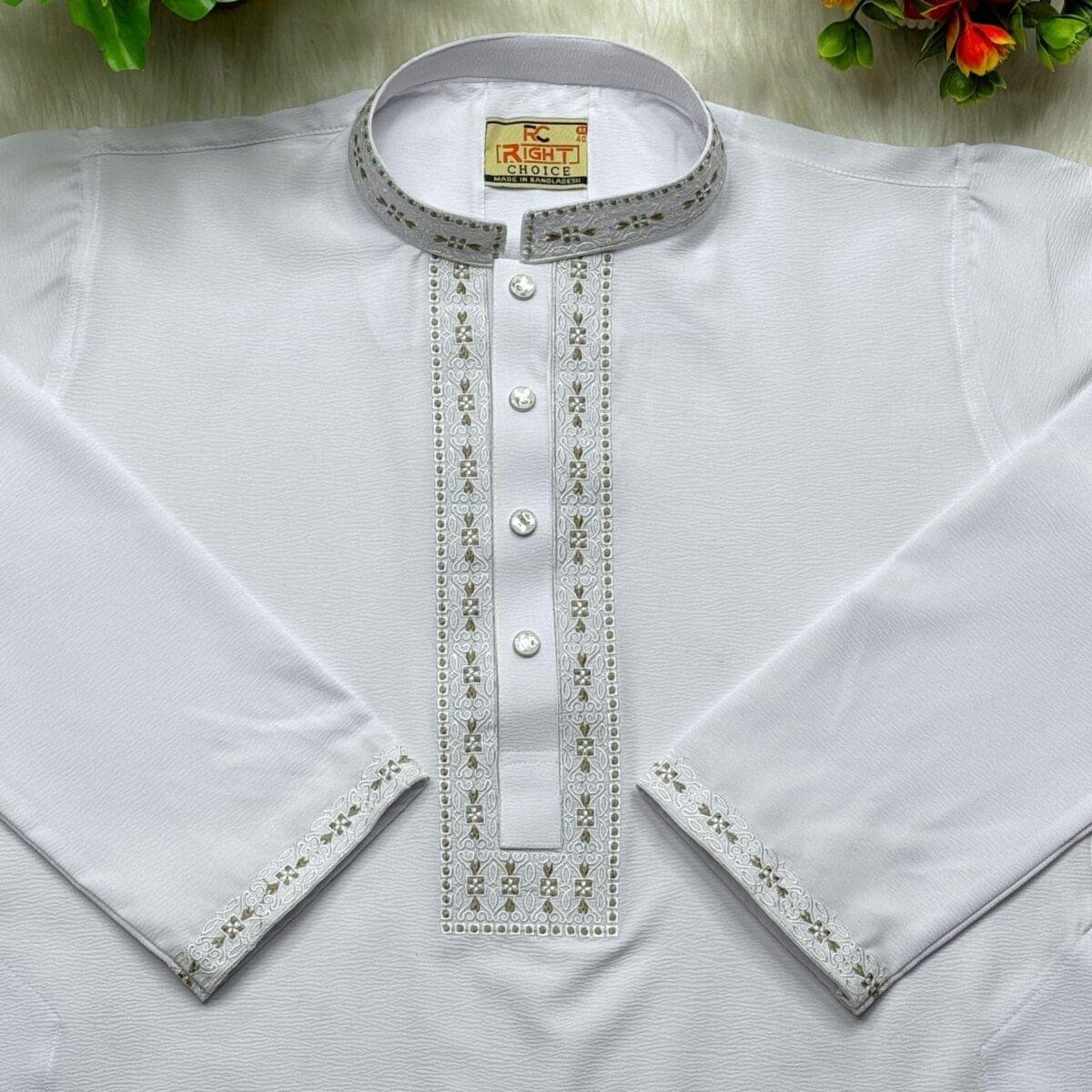 | কারুকার্য | পাঞ্জাবিটিতে রয়েছে চমৎকার হাতা কলার ডিজাইন কাজ, যা এটিকে একটি প্রিমিয়াম লুক দেয়। |