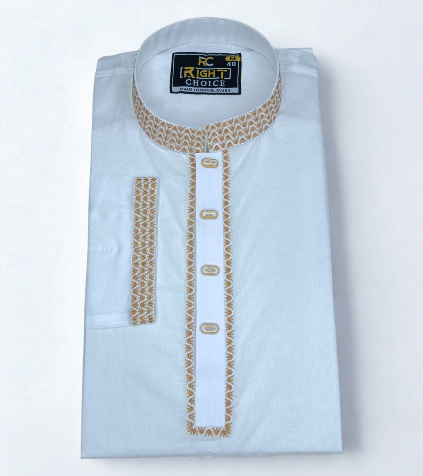 - ধুতি পাঞ্জাবির এই নকশাটি পারফেক্ট জুমা, ঈদ, ঘরোয়া অনুষ্ঠান কিংবা গেট টুগেদার-এর জন্য।